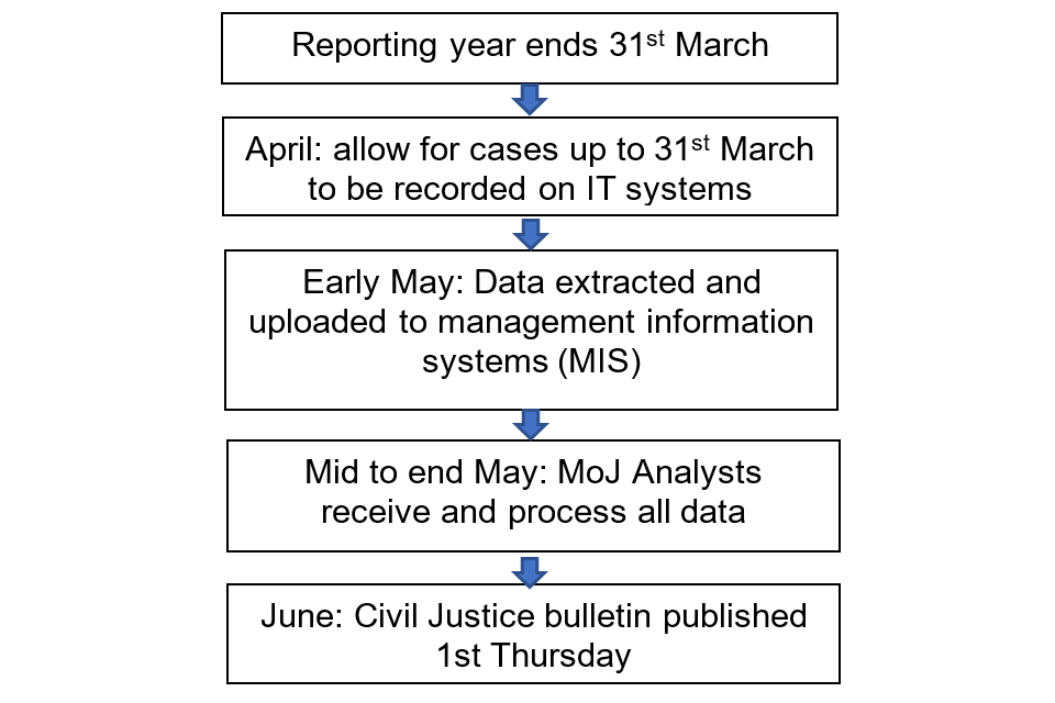 As data is extracted from these administrative systems and analysed to produce the published statistics, guidance from The Aqua Book[footnote 4] is used to ensure thorough quality assurance procedures are adhered to during the Civil Justice production process.