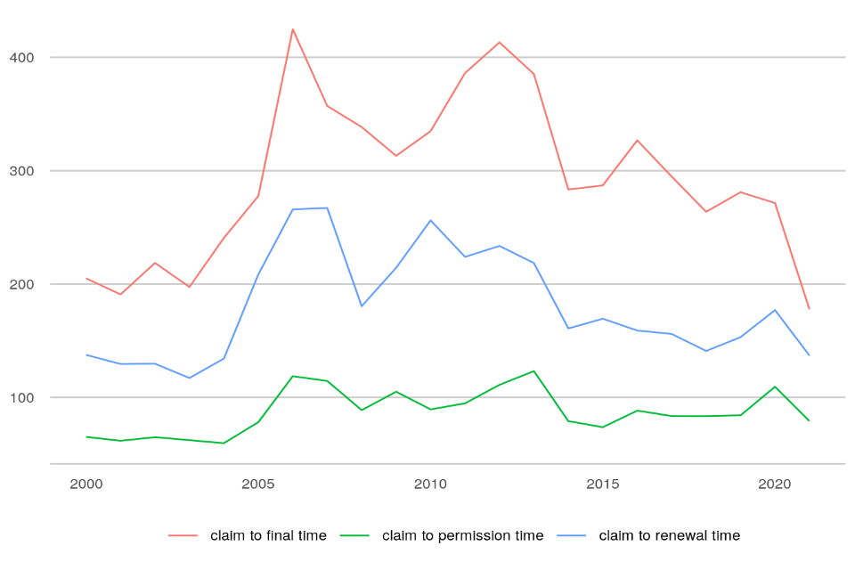 Timeliness graph for JR’s from claim to permission, renewal and final hearing to identify any anomalies or trends to be investigated.