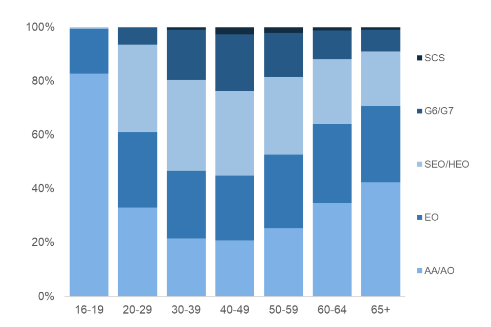 Figure 6.2: Percentage of civil servants at each grade by age band (see table 4)