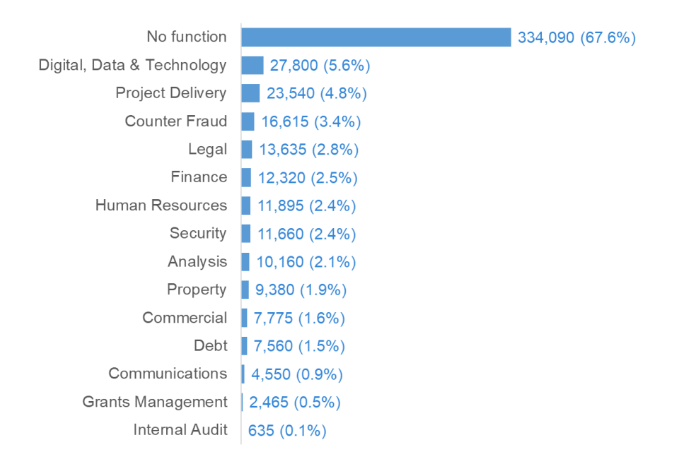 The largest function is Digital, Data & Technology (5.6%), followed by Project Delivery (4.8%), then Counter Fraud (3.4%).