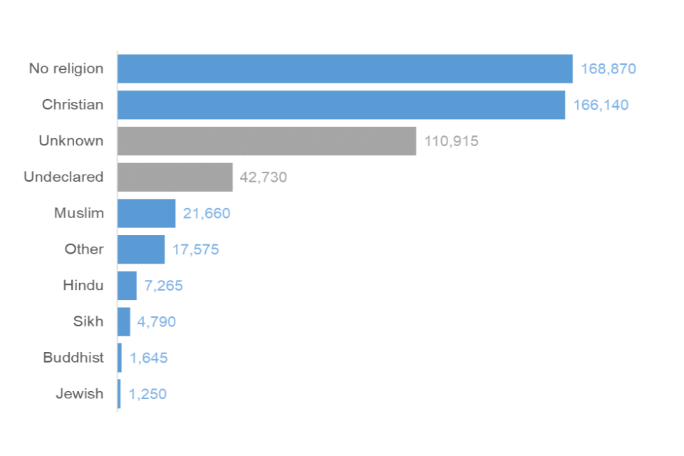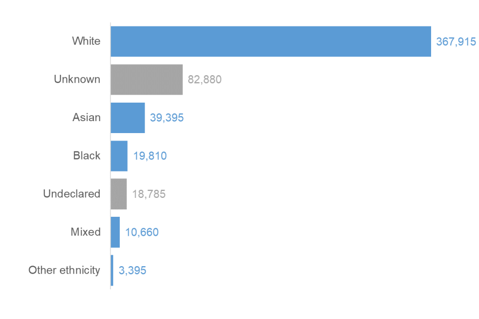 Of those with a known ethnicity, the percentage who are from an ethnic minority background is at a record high of 16.6%. This is an increase from 15.4% in 2023 and 10.2% in 2014.