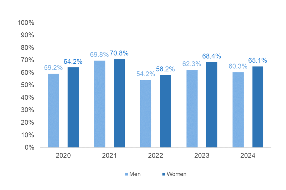 In line with last year, a higher proportion of women received a bonus compared to men (65.1% and 60.3% respectively).