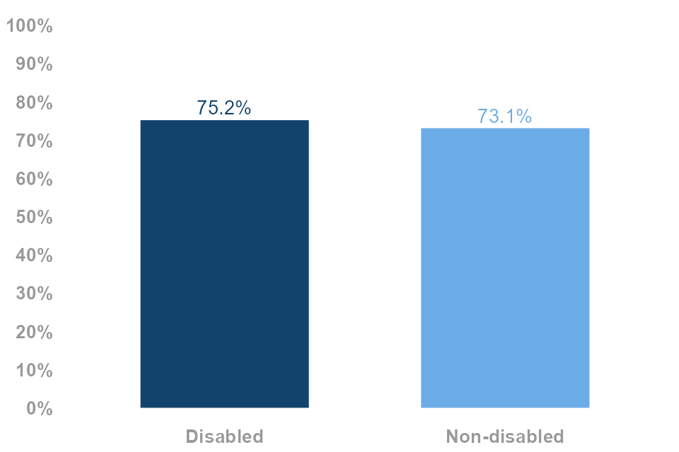 A higher proportion of disabled civil servants received a bonus in 2025 than non-disabled civil servants (75.2% and 73.1% respectively).