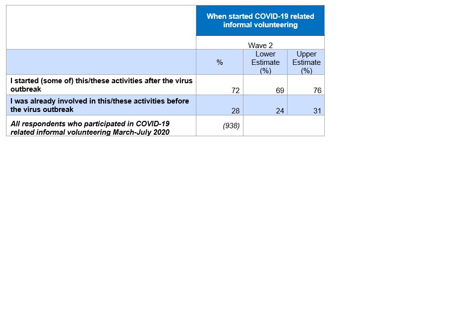 Table 4.6: When respondents started doing informal volunteering that contributed to the COVID-19 response, wave 2[footnote 3]