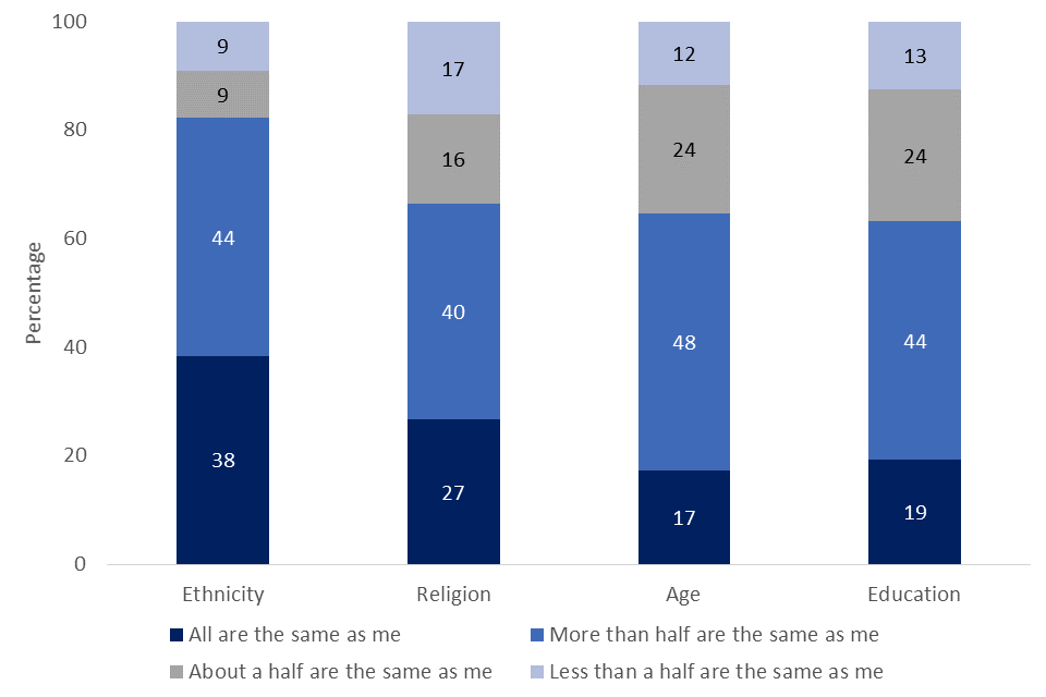 Figure 1.5 Similarity of friends to respondent in terms of ethnicity, religion, education and age group, 2019/20