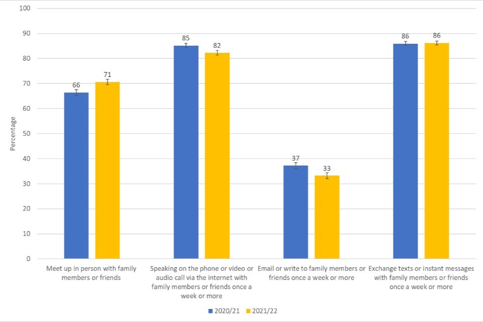 Figure 1.1: Methods of communicating with family or friends, 2020/21 - 2021/22