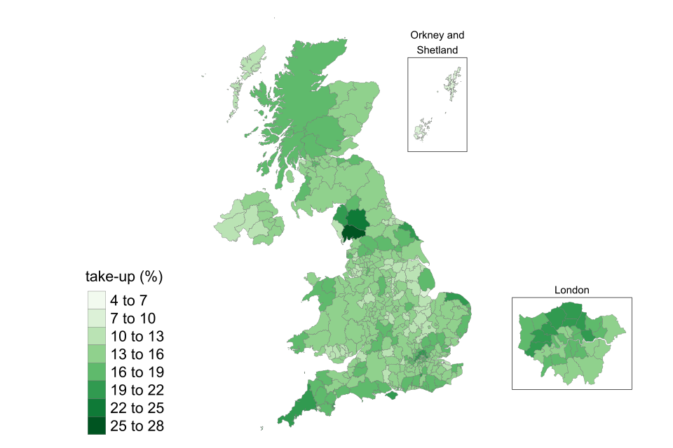 The geographic breakdowns in the tables and maps use a postcode lookup file from Office for National Statistics (ONS) data to link UK postcodes to geographic areas.