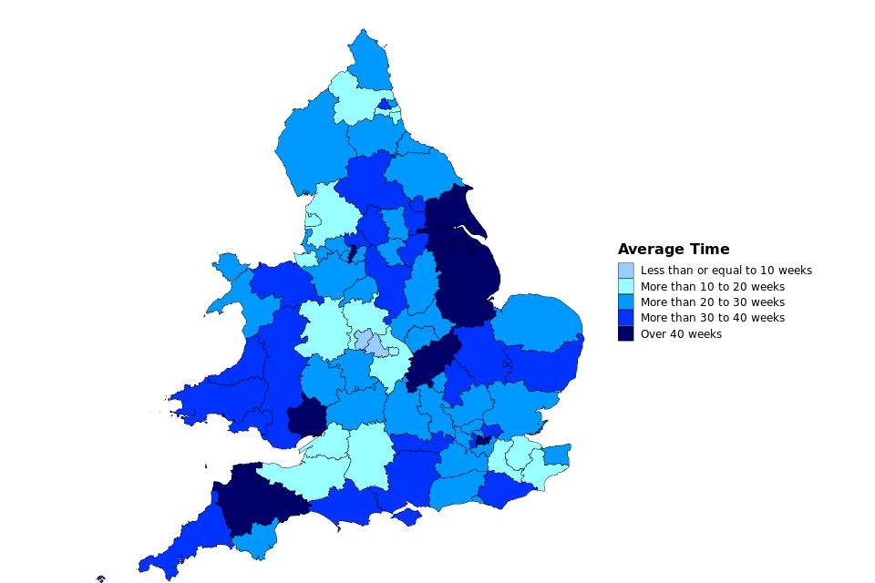 The time taken to process an inquest varies by coroner area - the maximum average time taken to process an inquest in 2020 was 50 weeks in North Lincolnshire and Grimsby, and the minimum average time was nine weeks in the Black Country. The large range of average time (41 weeks) may be due to the fact that the profile of coroner areas although there will be other factors including the resources provided to coroner services can vary greatly and a direct comparison between coroner areas is therefore not advised. Map 3 provides an overview of average time taken across coroner areas in England and Wales.
