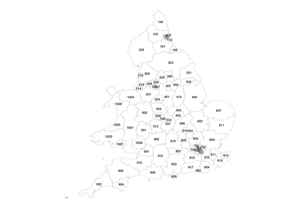 | 409 – Northamptonshire | 902 – Cornwall and Isles of Scilly |