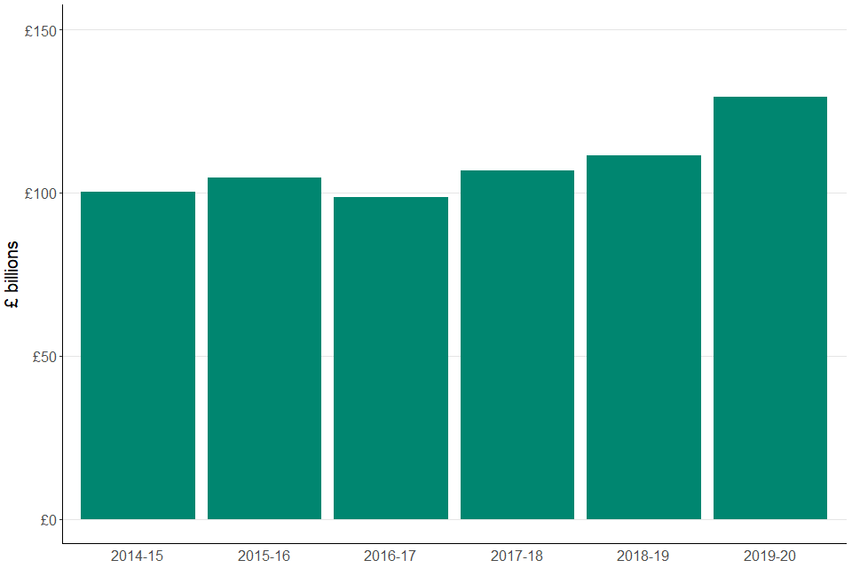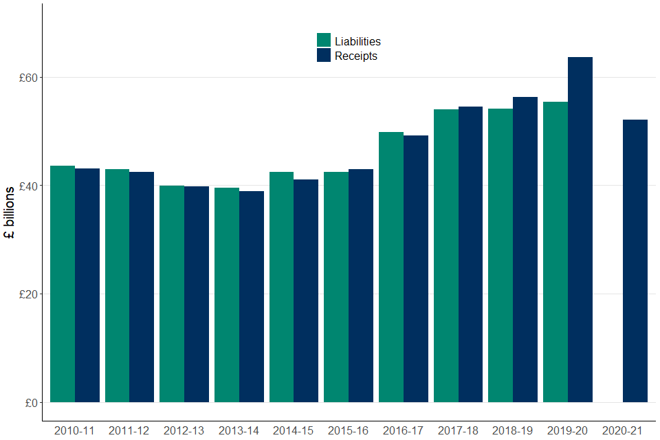 - liabilities increased by 2%, or £1.3 billion, in tax year 2019 to 2020 compared with the previous year