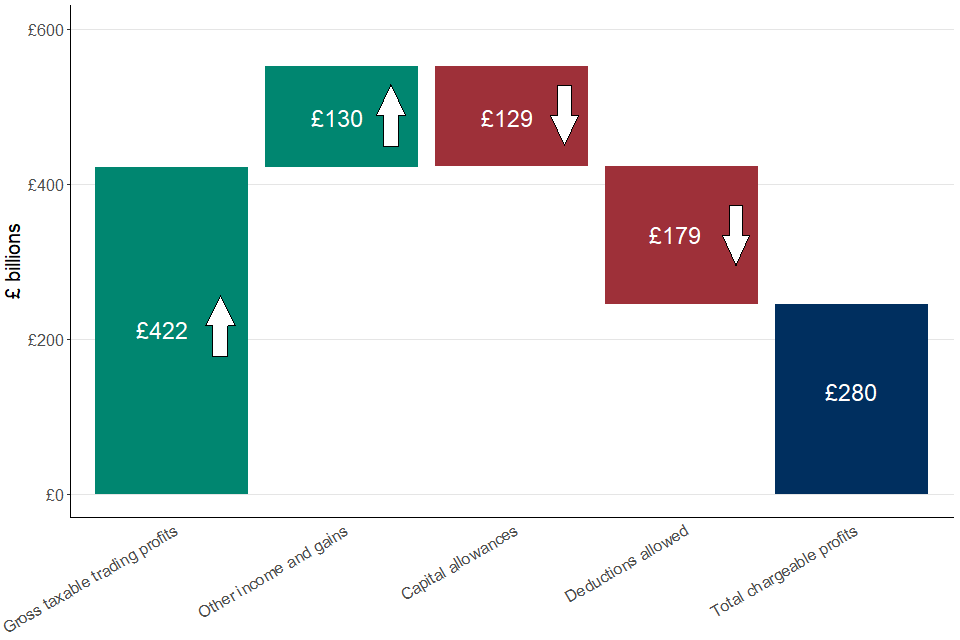 For tax year 2019 to 2020, chart 5 below visualises the main components and amounts that transform gross trading profit into total chargeable profits.