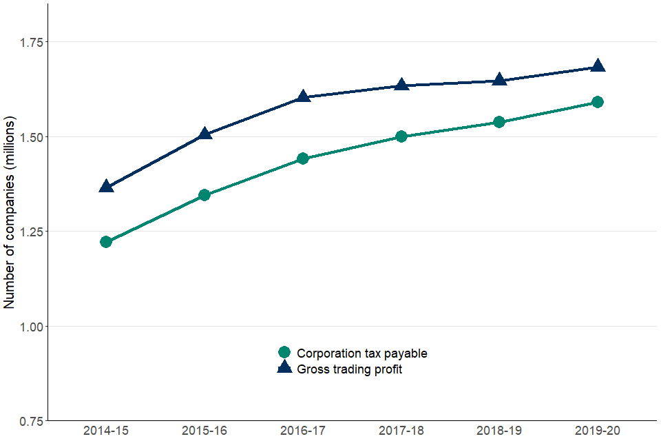 Companies with gross taxable trading profit grew by 2% to 1.68 million, whereas the number of companies required to pay CT increased by 3% to 1.59 million.