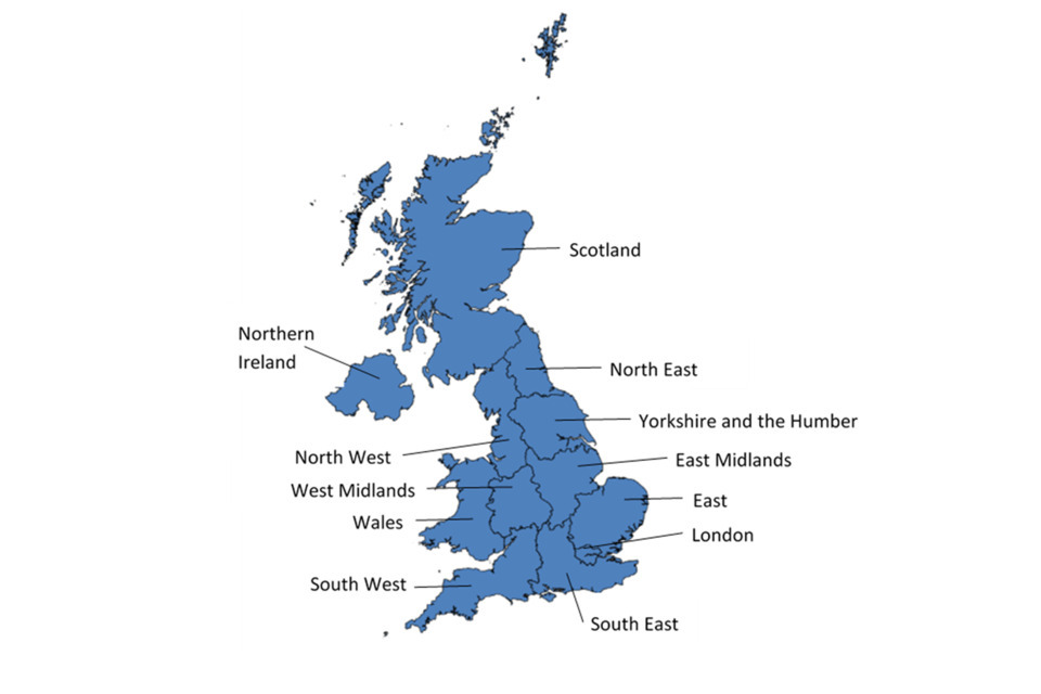 The maps and data in these dashboards are based on the boundaries for the International Territorial Level (ITL) at Level 1, in the United Kingdom, as defined by the ONS as at January 2021. This has replaced the Nomenclature of territorial units for statistics (NUTS) geographies for the UK that were operational when the UK was a member of the European Union. ITLs include the boundaries for Northern Ireland, Scotland, Wales, and the 9 statistical regions in England. ITL regions are currently identical to the NUTS regions last used in CRA 2021.