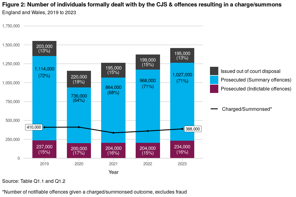1.46 million individuals were dealt with by the Criminal Justice System (CJS) in 2023