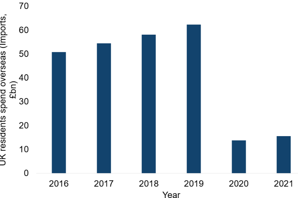 - £15.5 billion in tourism imports (spend on goods and services by UK visitors overseas)