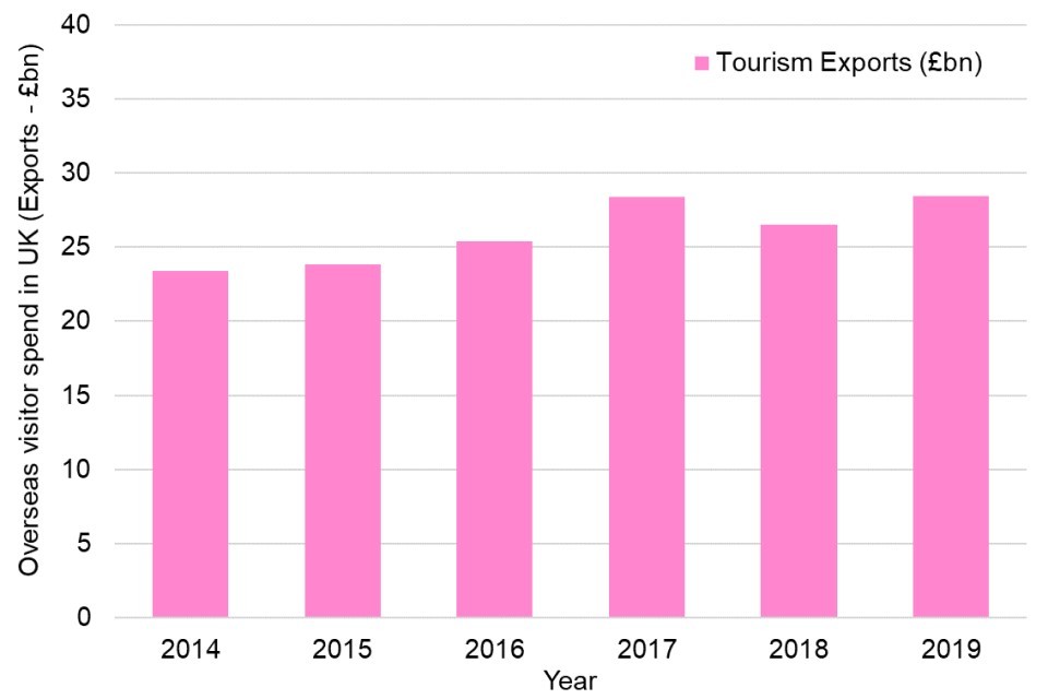 Figure 5.1: Spending by overseas visitors to the UK (Exports of Tourism), £bn: 2014 to 2019