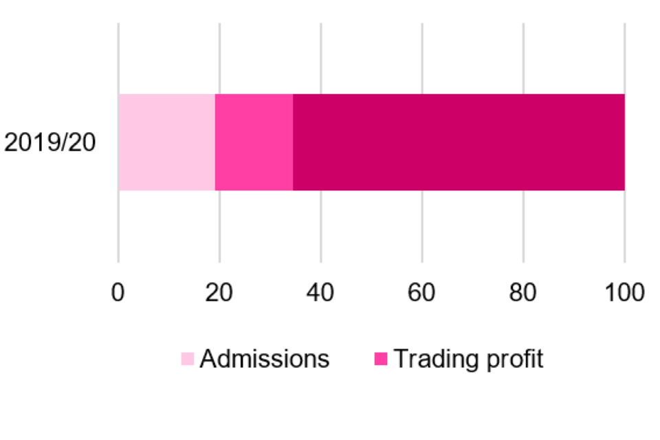 The total self-generated income for DCMS-sponsored museums is made up of fundraising, admissions income and trading net profit. DCMS publishes a separate report on total income of DCMS-funded cultural organisations, the next edition of which (covering the 2019/20 financial year) will be published this year. A breakdown of total income by type is given in Figure 2.
