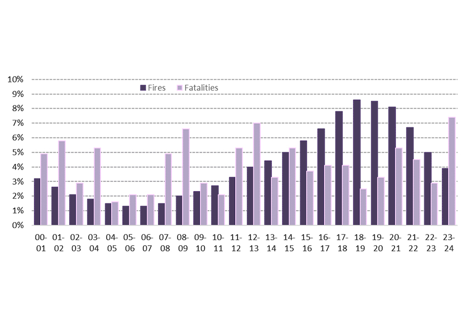 - there were 17 fire-related fatalities in other buildings in year ending March 2020, an increase of one from 16 fire-related fatalities in year ending March 2019