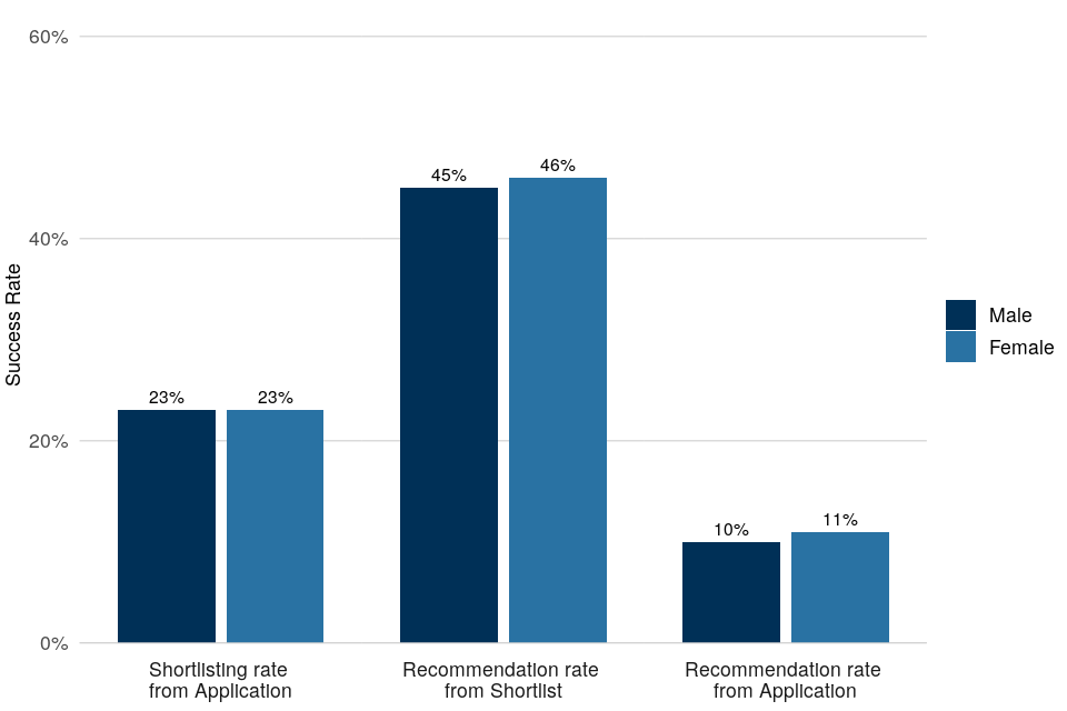 This lack of difference between male and female candidates is also shown by their similar progressions rates in Figure 3.
