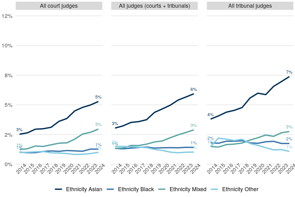 In total, ethnic minority individuals constituted 16% of all magistrate appointments made in 2023-24. More specifically: