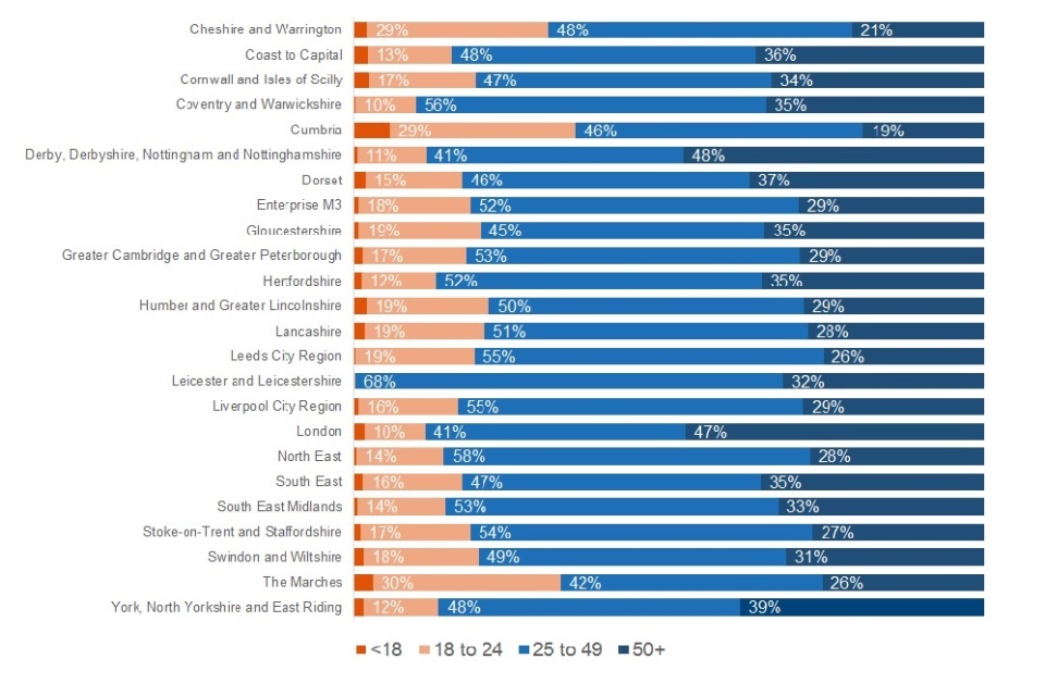 Percentage of age groups by LEPs, September 2016 to May 2021