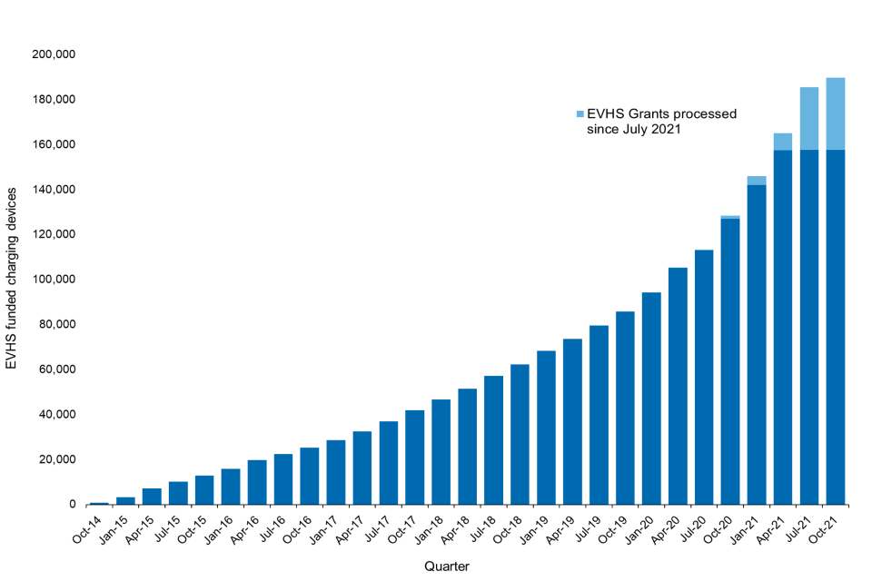 - the EVHS has funded the installation of 189,815 domestic charging devices