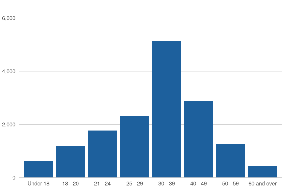 - 12% were aged under 21, 26% were between 21-29, 33% were between 30-39 and 29% were aged 40 or over, as at 31 March 2024.