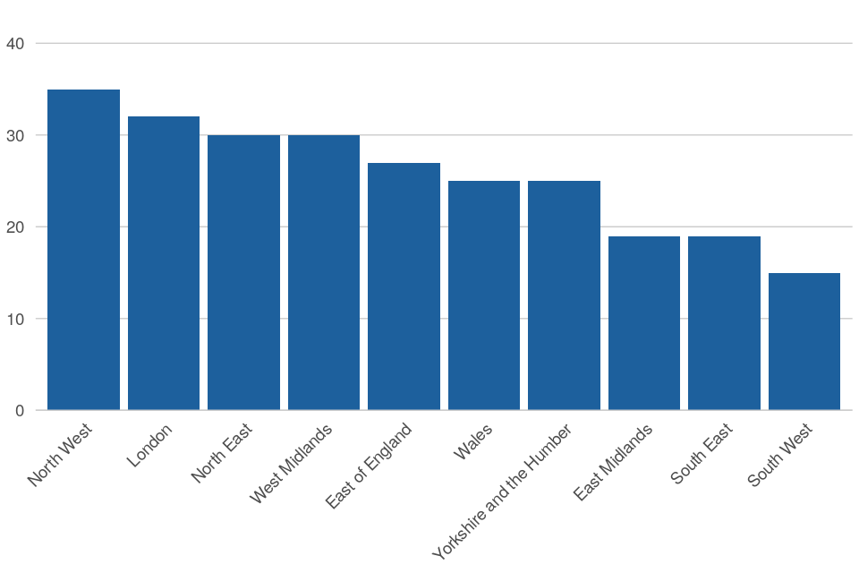- North West had the highest regional rate, with 35 individuals fitted with an electronic monitoring device per 100,000 population.