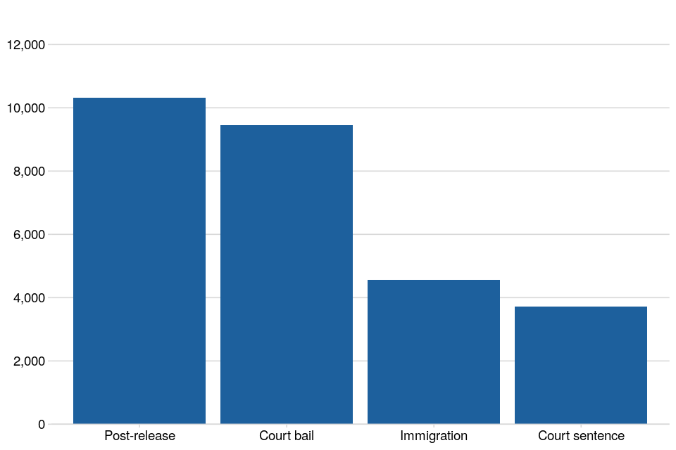 Electronic monitoring using a non-fitted device was introduced in November 2022 for the immigration cohort. These devices utilise periodic biometric verification as an alternative to fitted devices. Individuals with a non-fitted device have been included within the location monitoring (GPS) cohort for the purposes of this analysis.