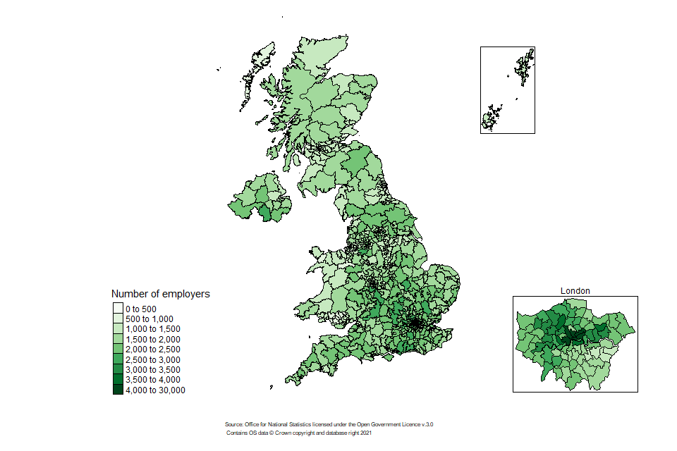 The largest proportion of employers benefitting from the relief are based in London at 18% (202,000). This is followed by the South East at 14% (163,000) and the North West at 10% (120,000).