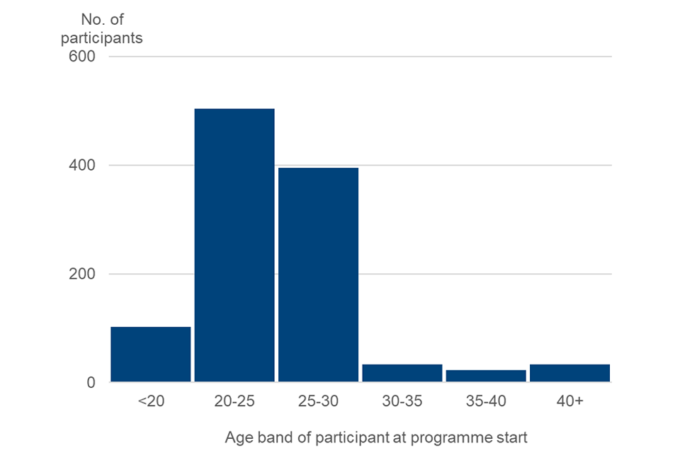 Figure 3: Plot showing the distribution of participant ages at programme start (all starters before April 2022 used in the evaluation).