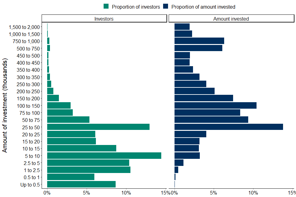 Figure 6: Proportion of investors and amount of investment, by size of investment (investment on which Income Tax relief was claimed), 2020-21