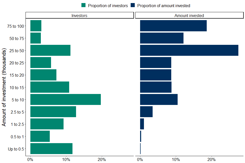 Most investors claiming the relief invested £10,000 or less into qualifying SEIS companies (59%).