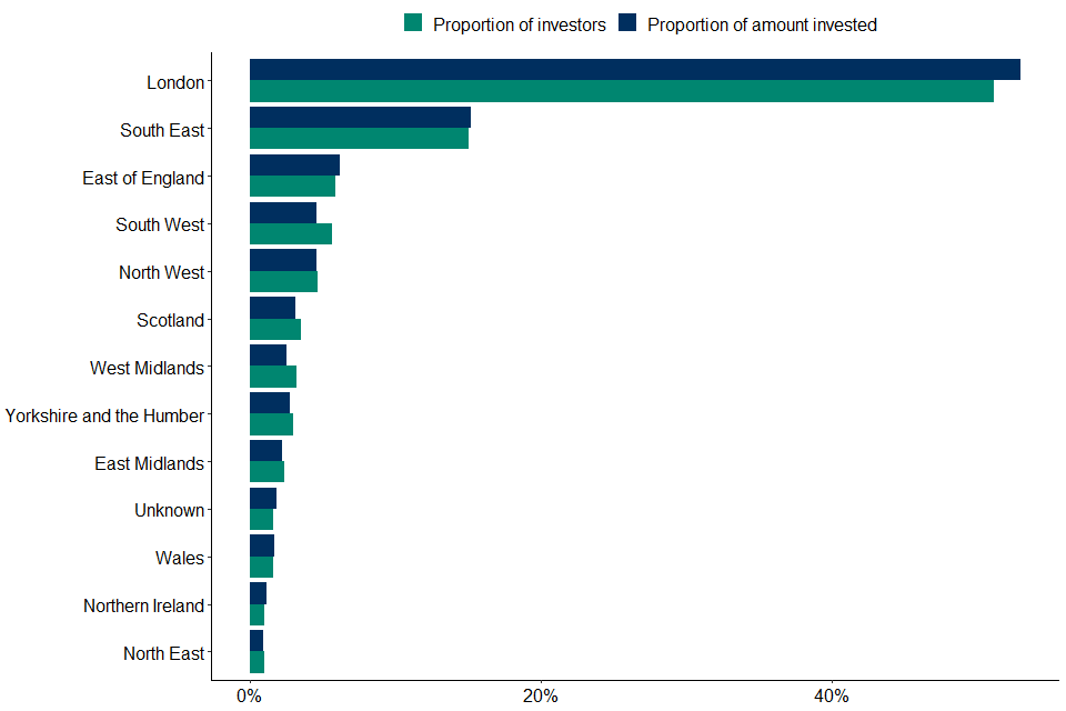 Companies registered in London and the South East accounted for the largest proportion of investment, raising £1,078 million (65% of all EIS investment) in 2020 to 2021.