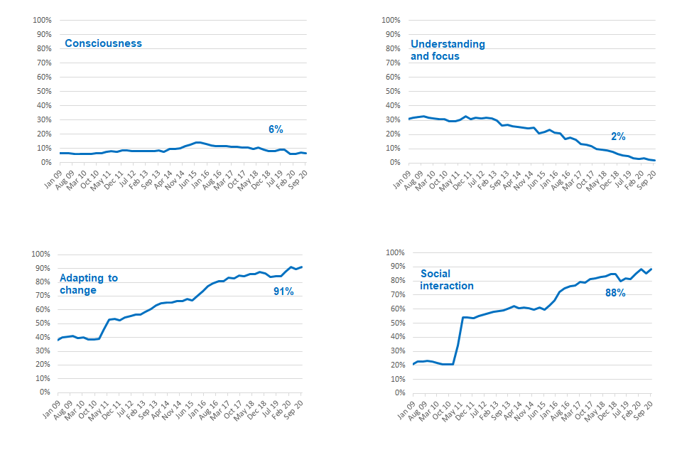 ‘Adapting to change’ and ‘Social interaction’ remain the main reasons for WRAG allocation (with 15 points or more) this quarter.