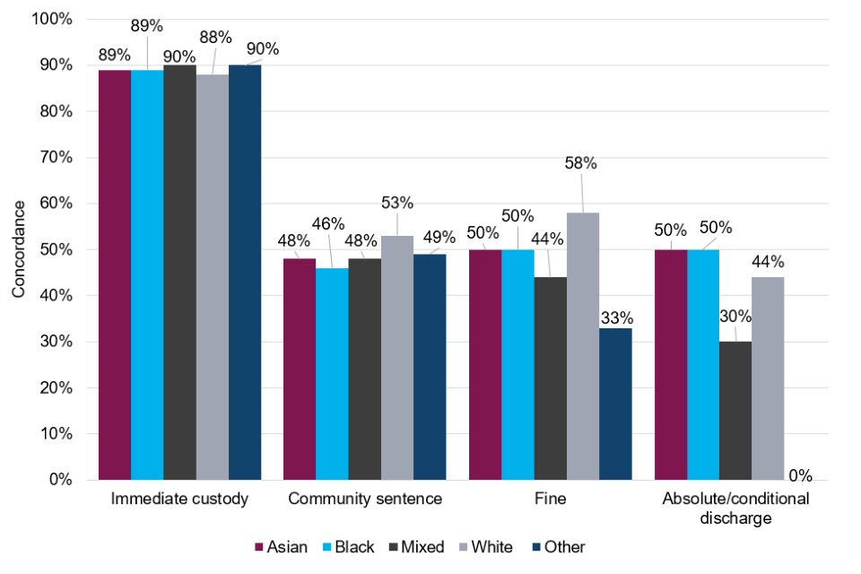 Concordance rates are calculated by dividing the number of those who were recommended to receive a sentence disposal and did receive it, by all those who were recommended to receive it. ↩