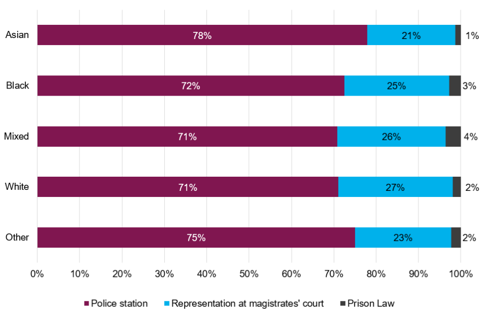 Where ethnicity is known. 25% of crime higher legal aid clients had an unstated ethnicity. ↩