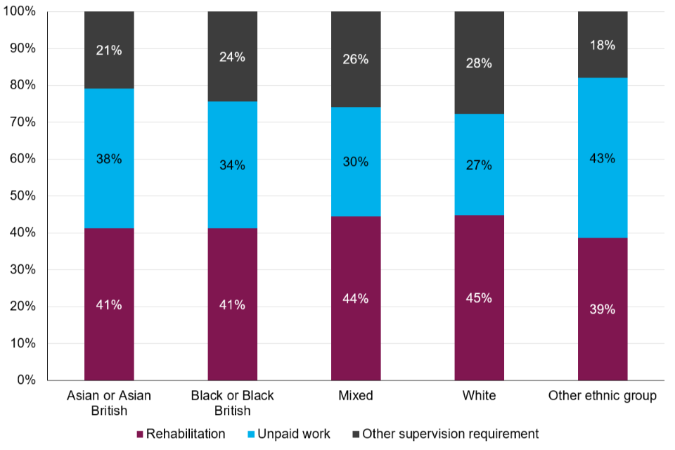 Ethnicity was recorded for 92.33% of community orders and 93.68% of suspended sentence orders commenced in 2022. Those where ethnicity was not known/recorded are not included in this commentary. ↩