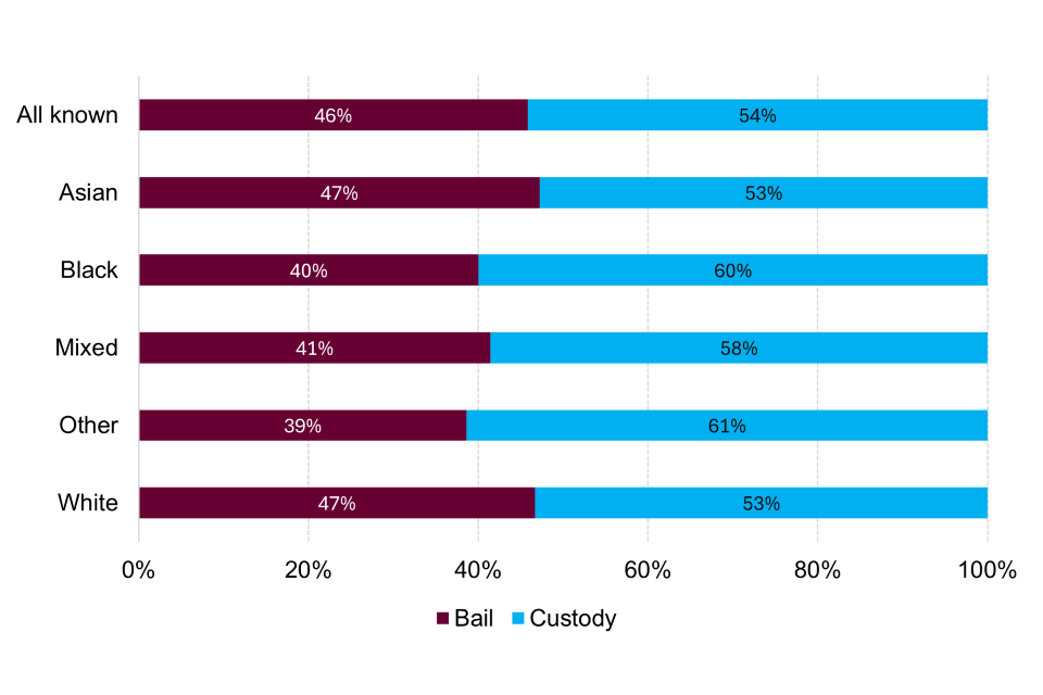 We are working with HMCTS and partners across the criminal justice system to improve the availability of ethnicity data from underlying administrative systems to ensure that findings from this report are reliable and robust.