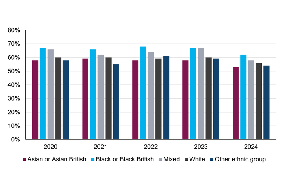 Since the introduction of a new web-based service Apply for Criminal Legal Aid in August 2024, information on ethnicity has no longer been collected, resulting in an increase in records marked as “unknown”.