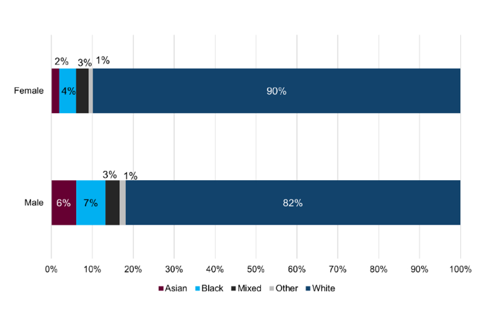 Within the latest release on Ethnicity and the Criminal Justice System 2024, additional information includes: