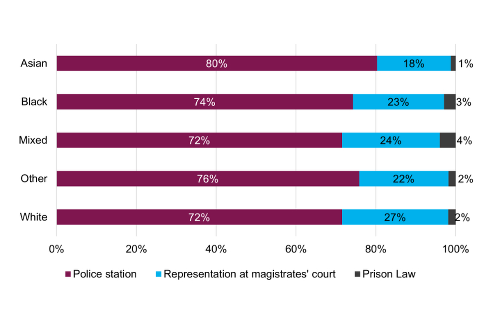 Where ethnicity is known. 33% of crime lower legal aid clients had an unstated ethnicity. ↩