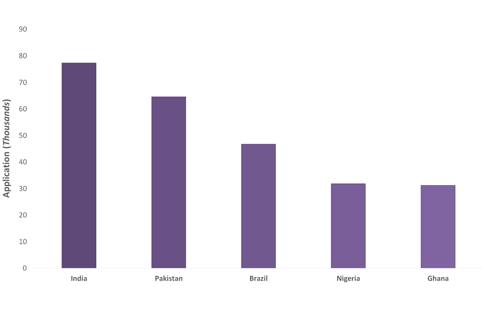 of the 6.4 million applications received, 7% (468,290) were from non-EEA nationals, with the highest applications from Indian (77,320), Pakistani (64,560) and Brazilian nationals (46,750)