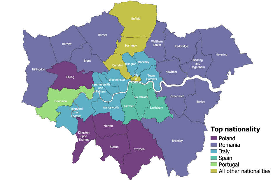 Figure 8 below shows the top nationality in each local authority within London.