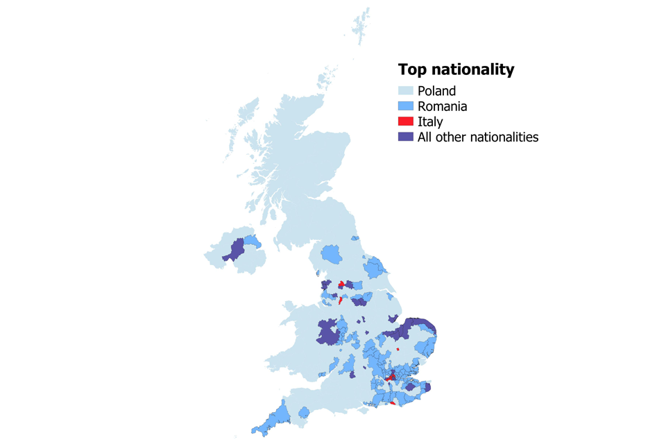 Figure 10 below shows the top nationality in each local authority.