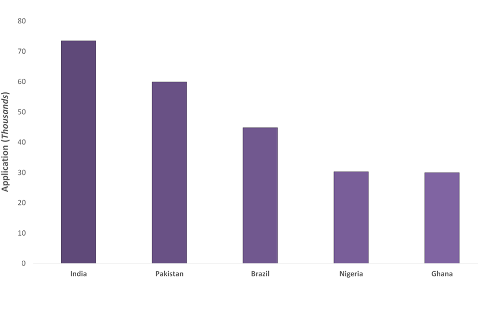 of the 6.2 million applications received, 7% (443,380) were from non-EEA nationals, with the highest applications from Indian (73,510), Pakistani (59,960) and Brazilian nationals (44,820)