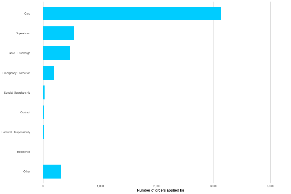 Figure 2: Public law applications, by order type, April to June 2022 (Source: Tables 3-4)