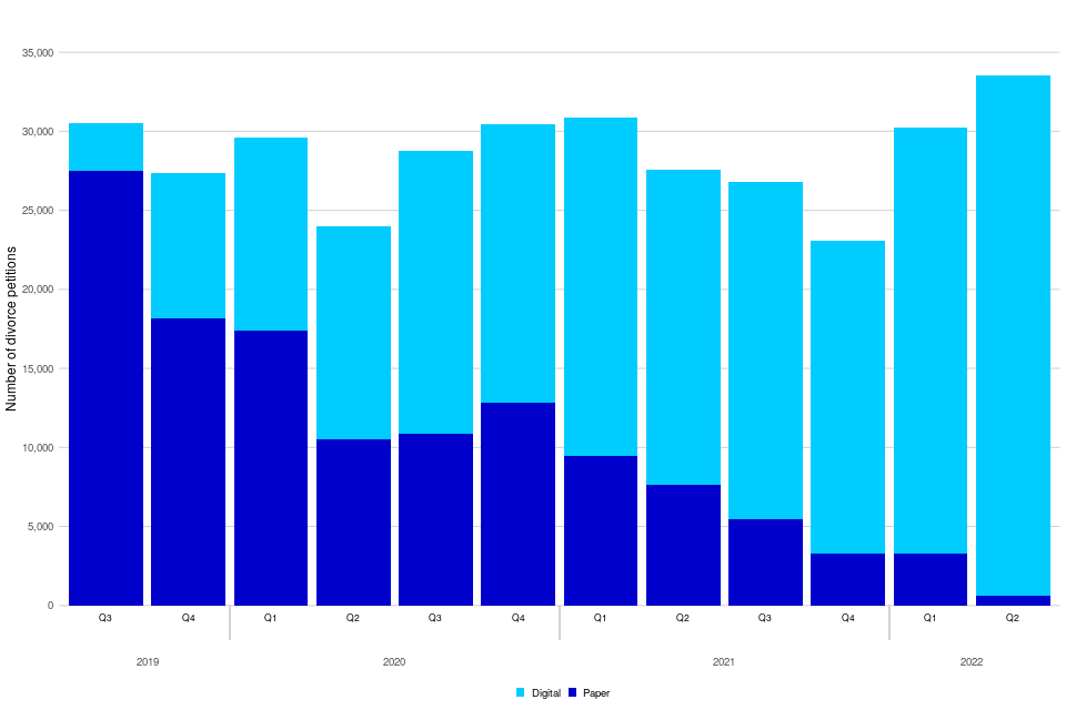 Figure 5: Divorce petitions made between Q3 2019 to Q2 2022, by case type (Source: Table 12)