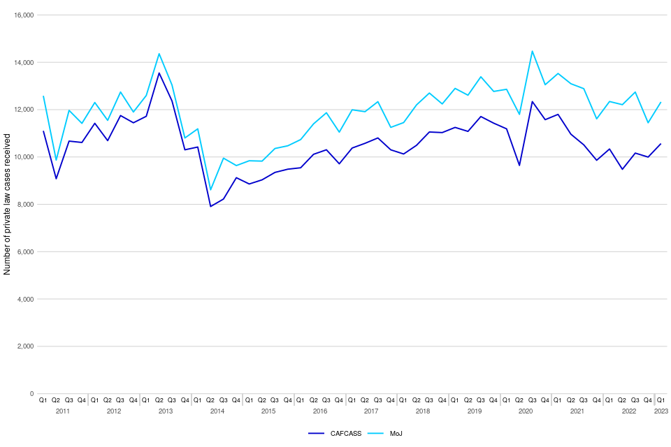 Cafcass also publishes (England only) data on the number of private law cases started.