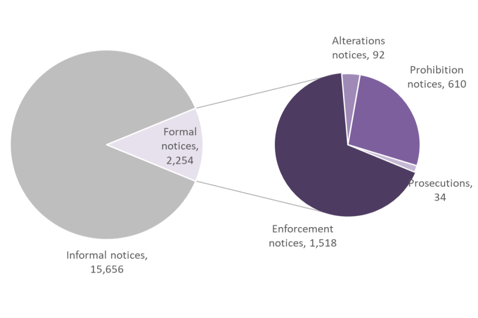 There were 2,254 formal notices issued in financial year 2021 to 2022, compared with 1,331 in financial year 2020 to 2021 and 2,295 in financial year 2019 to 2020. The number of formal notices issued in financial year 2021 to 2022 was higher than the 2,046 in financial year 2016 to 2017, when the data were first collected.